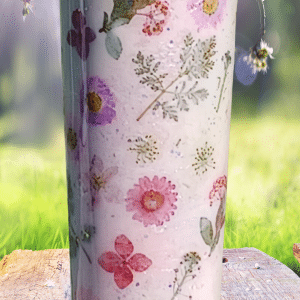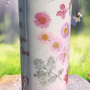 This beauty pairs real pressed flowers with a cheeky quote that speaks directly to your soul (and caffeine addiction): “May your coffee kick in before reality does.” And let’s be honest, if it doesn’t, you’re probably not leaving the house anyway.