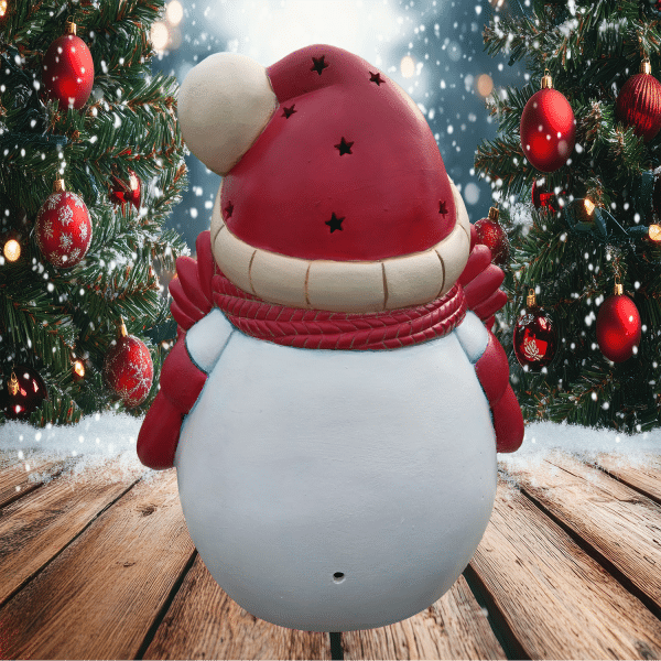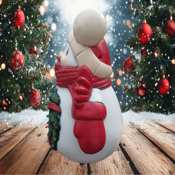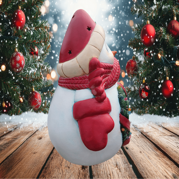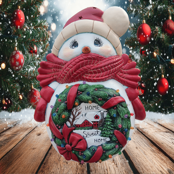 Wrapped in a scarf bigger than your unresolved family drama, this jolly beast of ceramic joy features a tiny little wreath scene right in its belly. Inside? A suspiciously perfect house that’s 100% hiding elves on unpaid overtime.