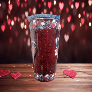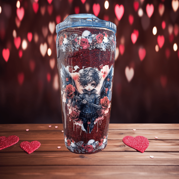 Love is in the air—and so is danger. This glitter-drenched goth angel didn’t come to whisper sweet nothings; they came armed, fabulous, and ready to ruin your whole Valentine’s aesthetic. Sip if you dare.