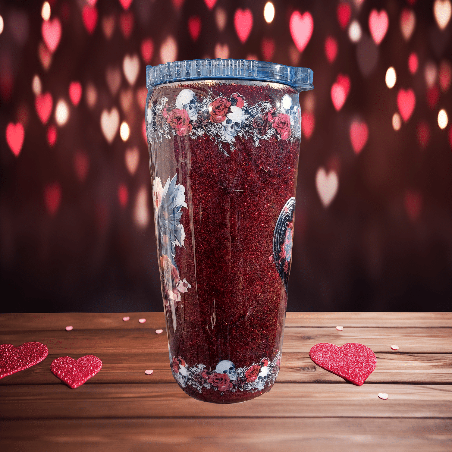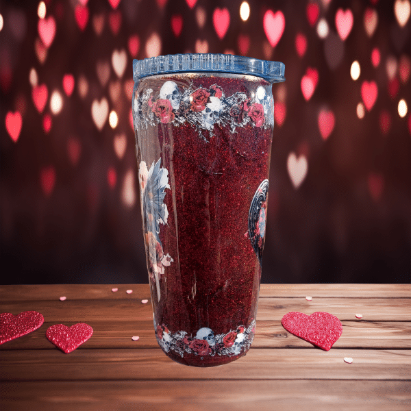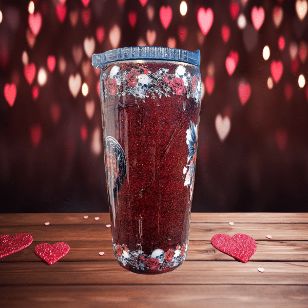 Red LED lights illuminate the tumbler, casting an eerie, passionate glow that screams “dangerously romantic”—whether you’re sipping under the stars or plotting revenge by candlelight.