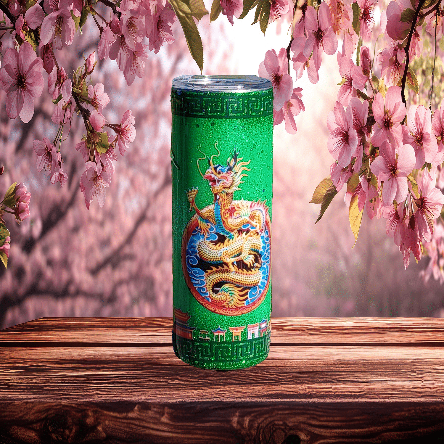 Unleash the power of the East with our Dragon’s Breath Elegance tumbler. This eye-catching creation features a majestic golden dragon swirling against a dazzling emerald green glitter background, symbolizing strength, fortune, and timeless beauty. The intricate dragon design is surrounded by ornate cultural patterns and vibrant temple accents, making this a bold and unforgettable statement piece. Whether you’re sipping tea, coffee, or your favorite cold beverage, let this mythical guardian inspire your day with its fierce yet graceful presence.