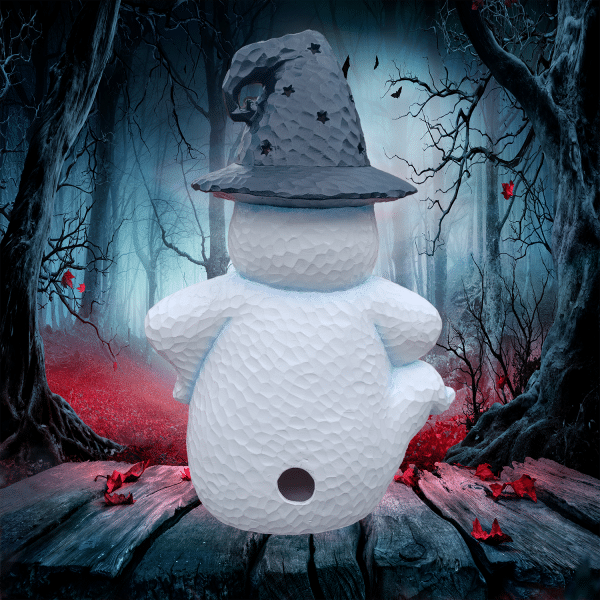 Say hello to Nightshade McBoo, the cheerfully demented ghost-wizard hybrid who took a wrong turn at whimsical and ended up in “Cursed Cottagecore.” He’s rocking a battered wizard hat sprinkled with glowing star cutouts, a smug smile that says “I saw what you did last October,” and a graveyard belly scene that might just blink back at you.