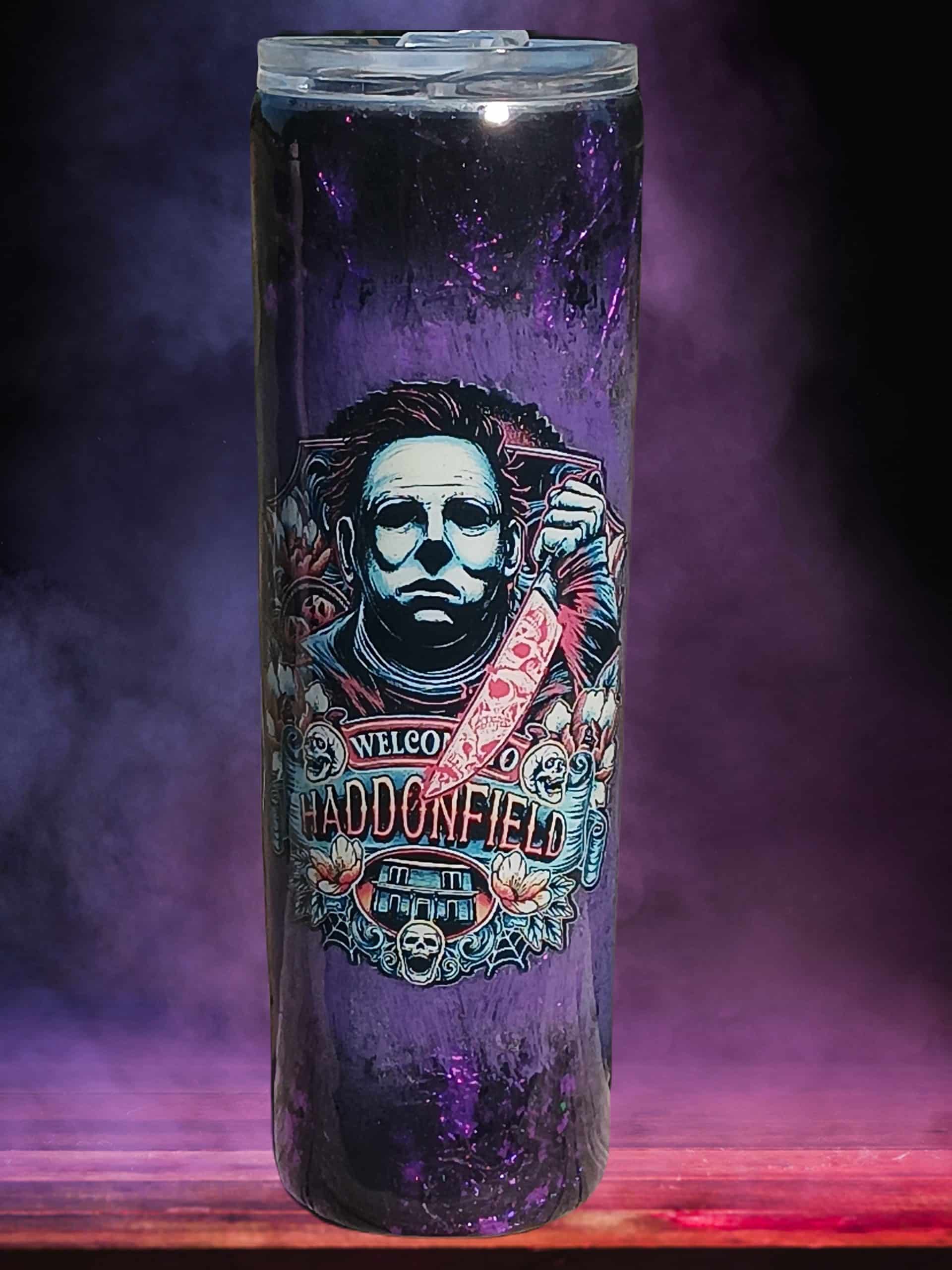 Cold, quiet, and deadly—just like Michael. This glittering Haddonfield tumbler serves up your drinks with a side of silent menace.