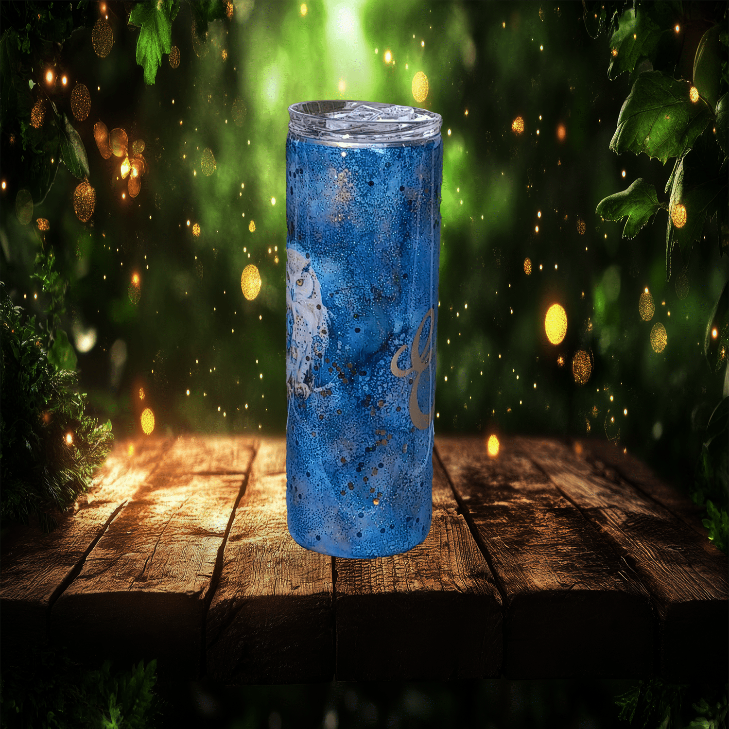 Twilight Gaze captures the magic of the night — a shimmering blue custom tumbler featuring a majestic owl, perfect for dreamers, stargazers, and lovers of woodland wonders